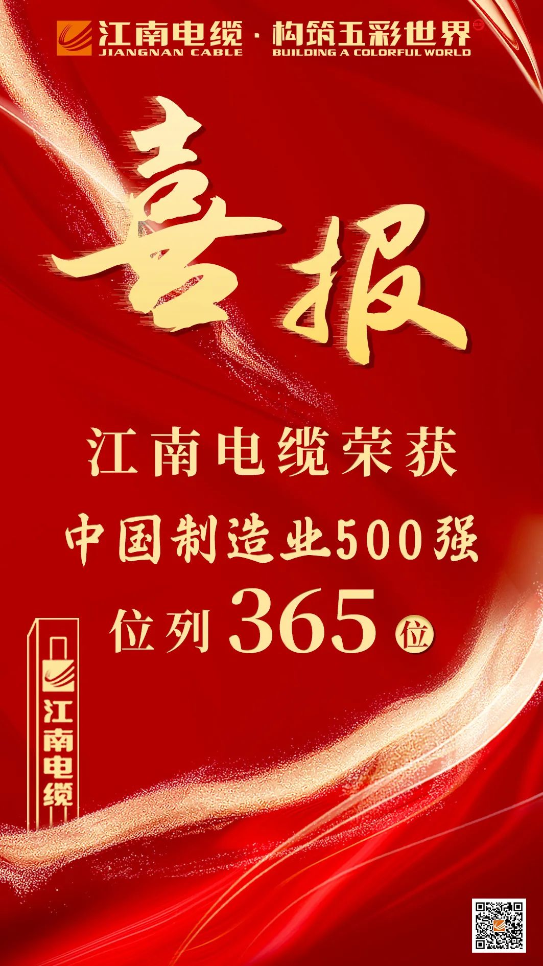 【喜报】江南电缆荣获中国制造业企业500强