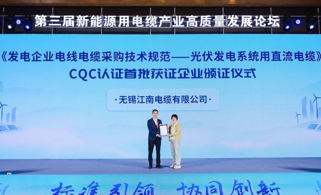 江南电缆这一系列产品已成为标准引领下的新能源电缆典范,首批获证彰显了江南电缆在新能源电缆领域的硬核实力,充分发挥了国内相关标准和检测认证在新能源产业质量基础设施方面的重要作用。