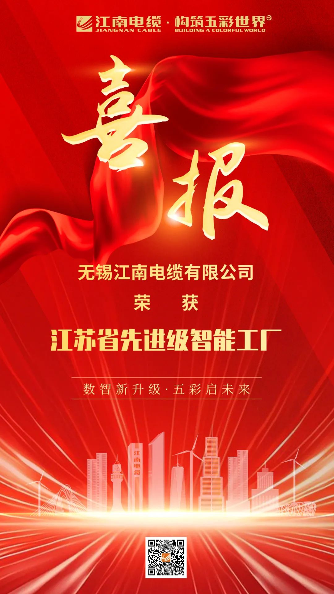 【喜报】江南电缆荣获江苏省先进级智能工厂