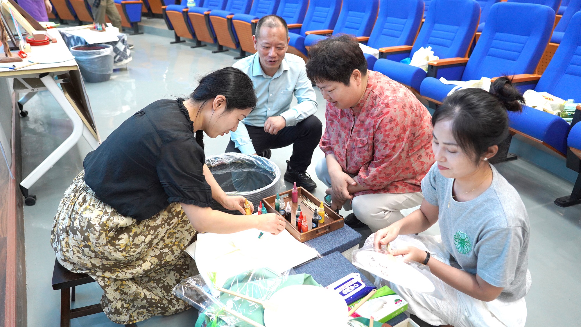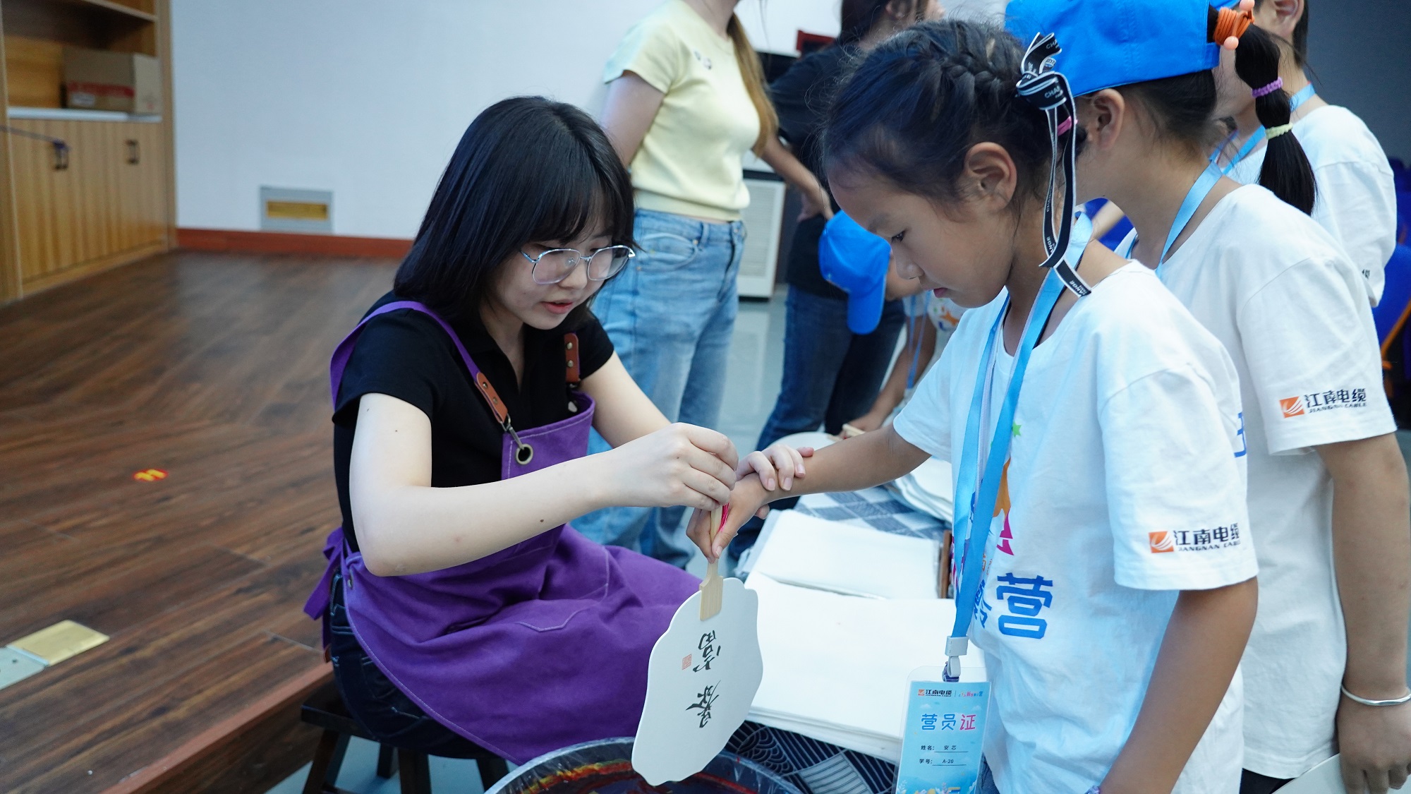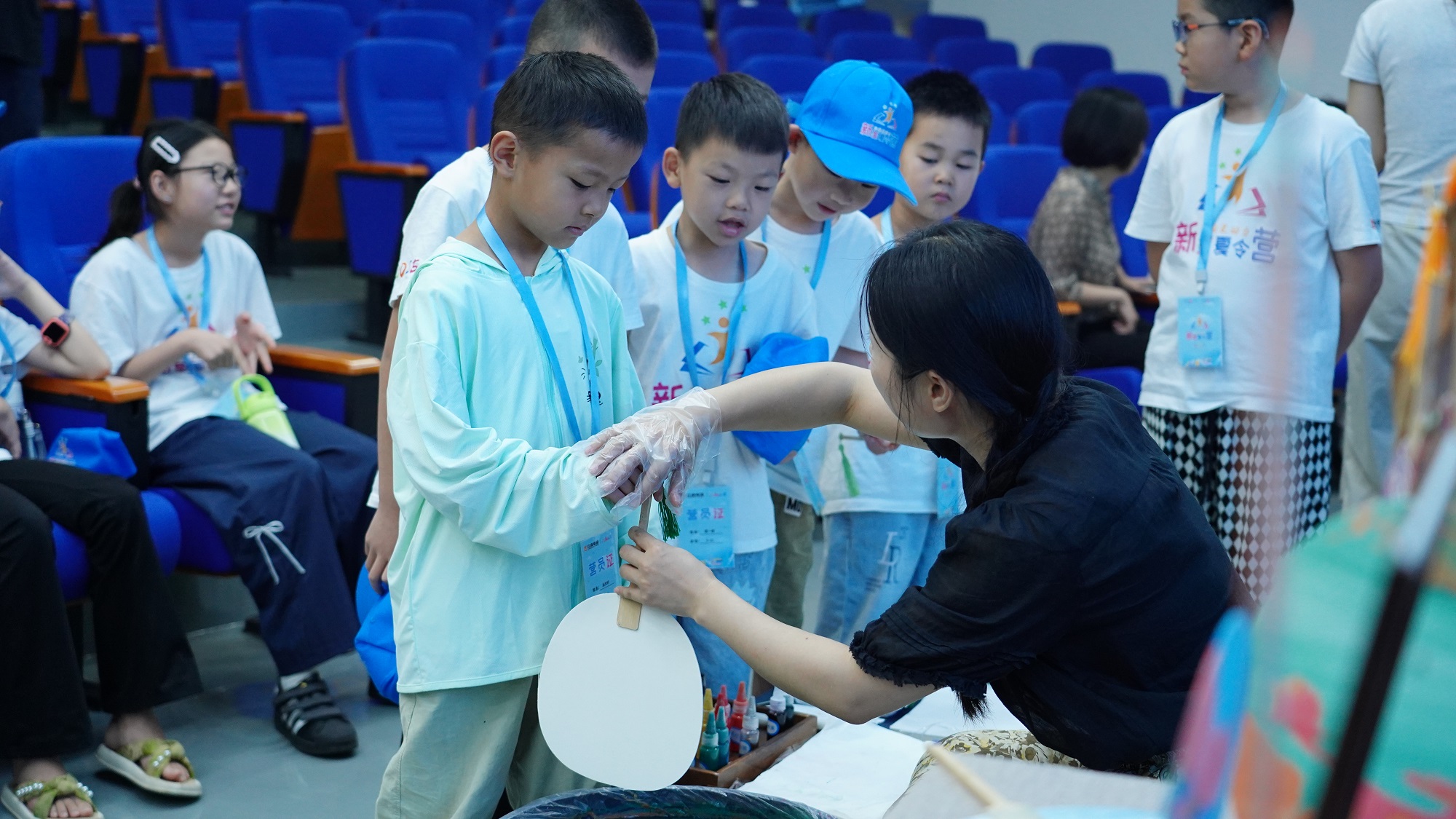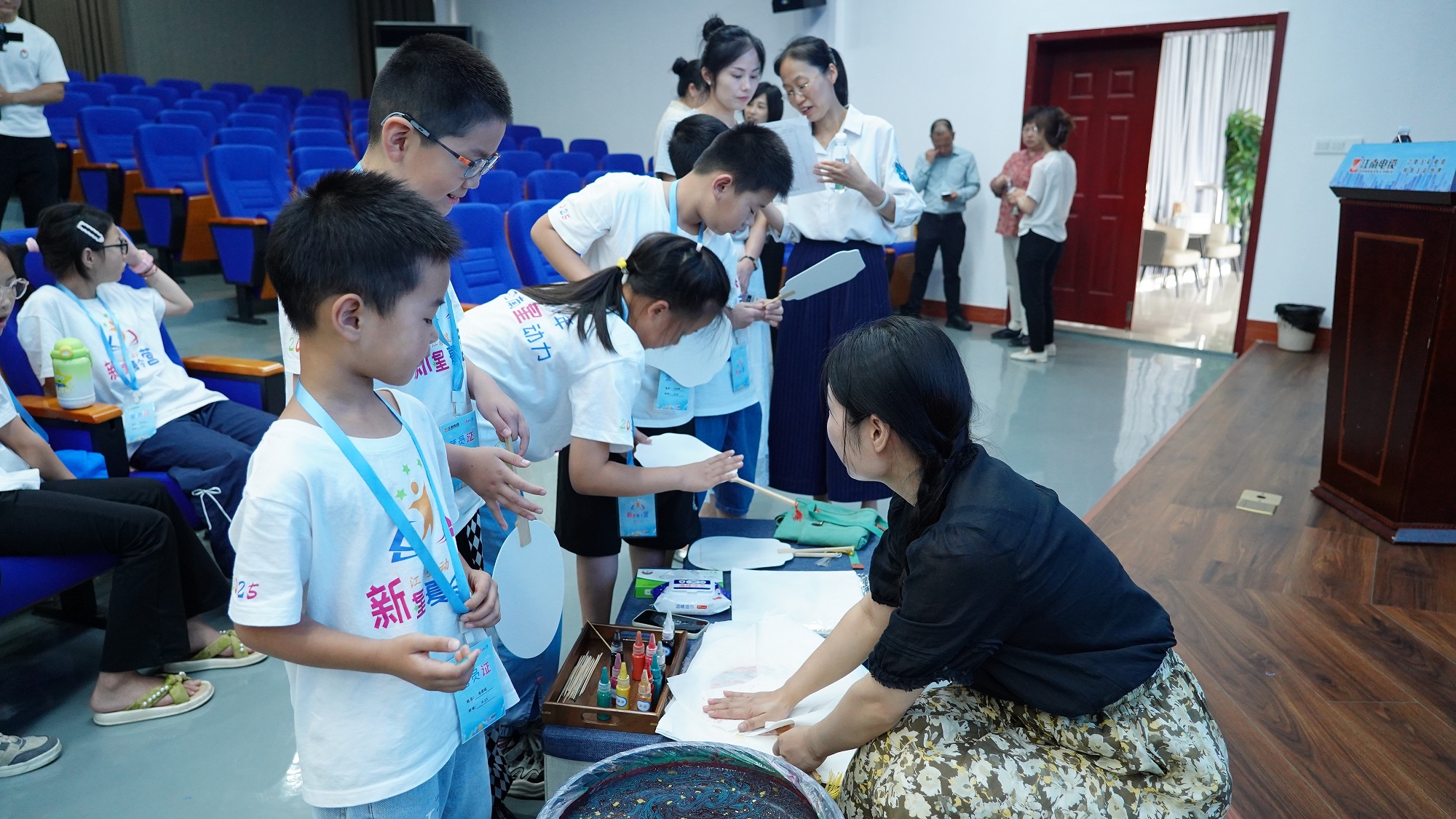 在老师的指导下,孩子们认真学习漆扇制作技巧,从颜色选择到滴入漆料再到素扇入水附着花纹,一把把绚丽、雅致的漆扇跃然而出。大家在实践中感受非遗技艺的精妙,更在潜移默化中培养了对传统文化的热爱。