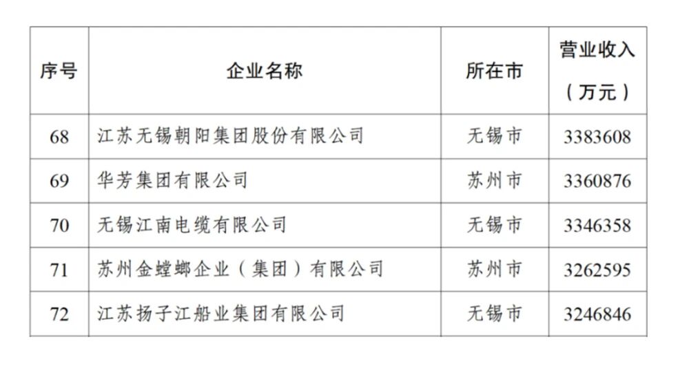 江苏民营企业百强系列榜单