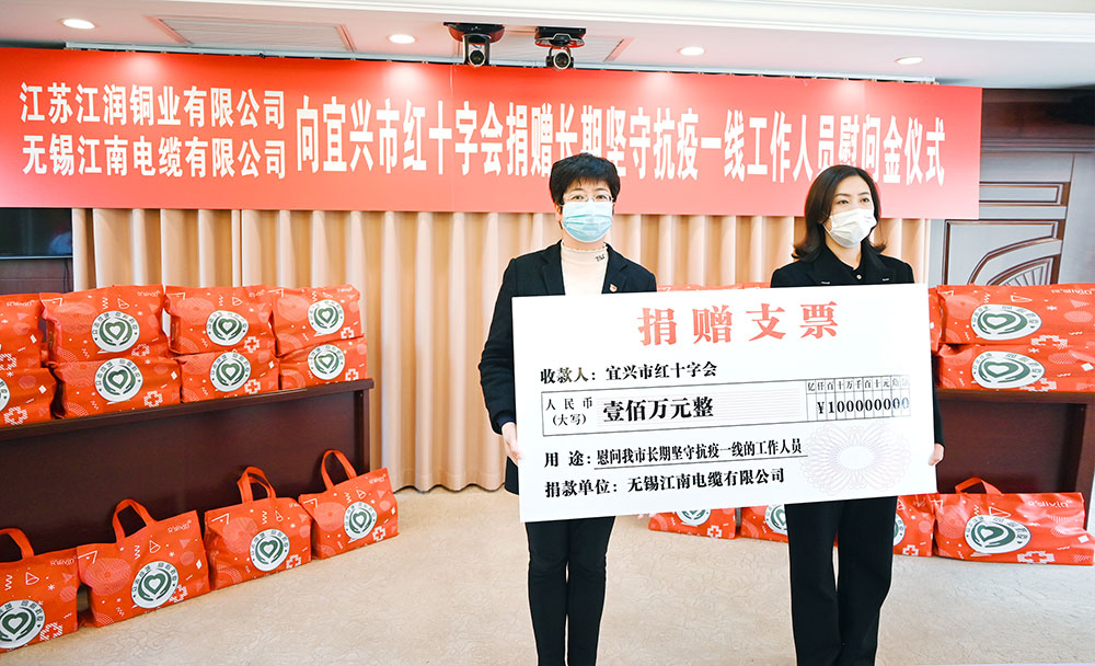 向宜兴红十字会捐赠100万—关心、关爱长期坚守抗疫一线工作人员