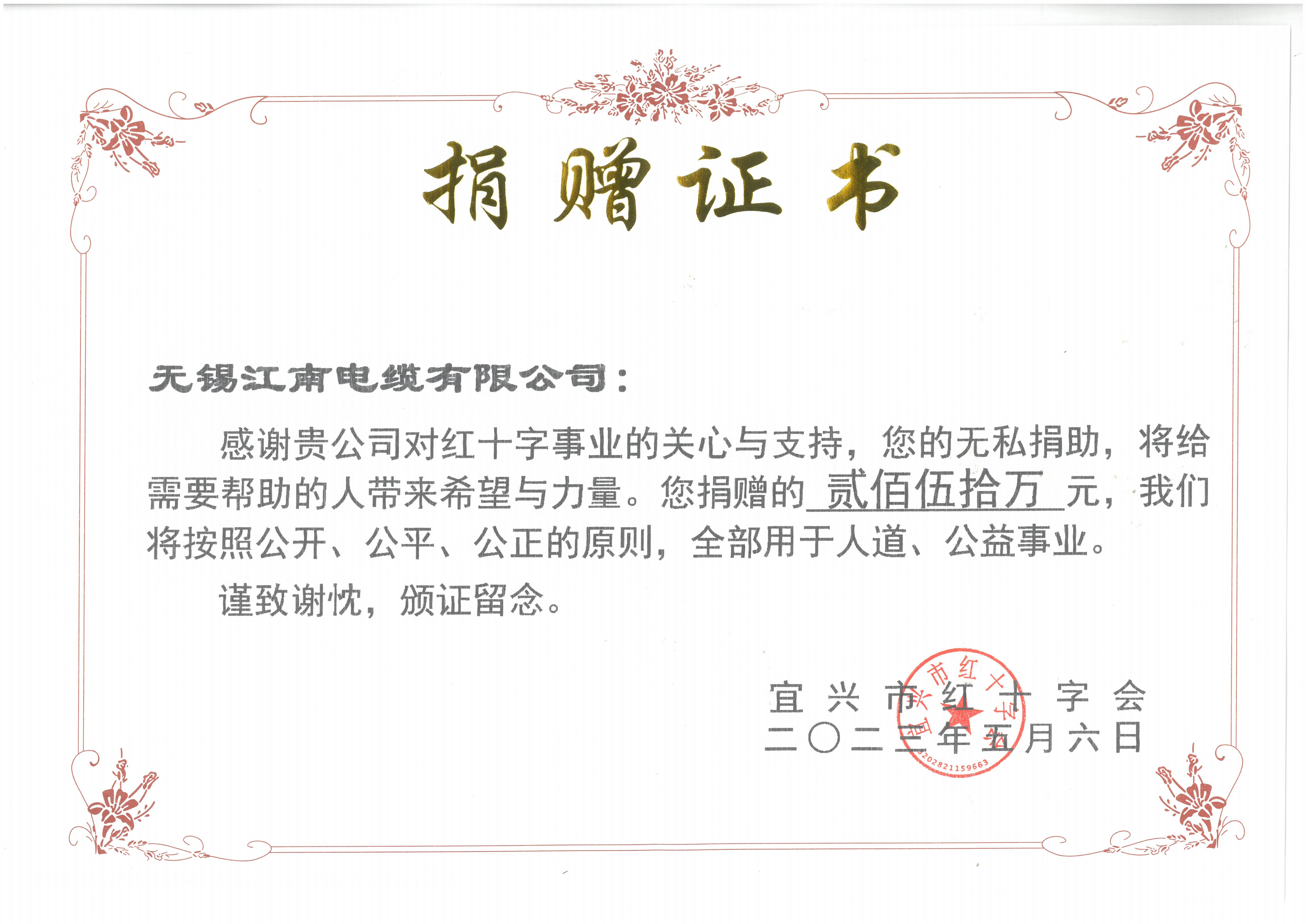 向宜兴市红十字会捐赠250万元--支持公益事业