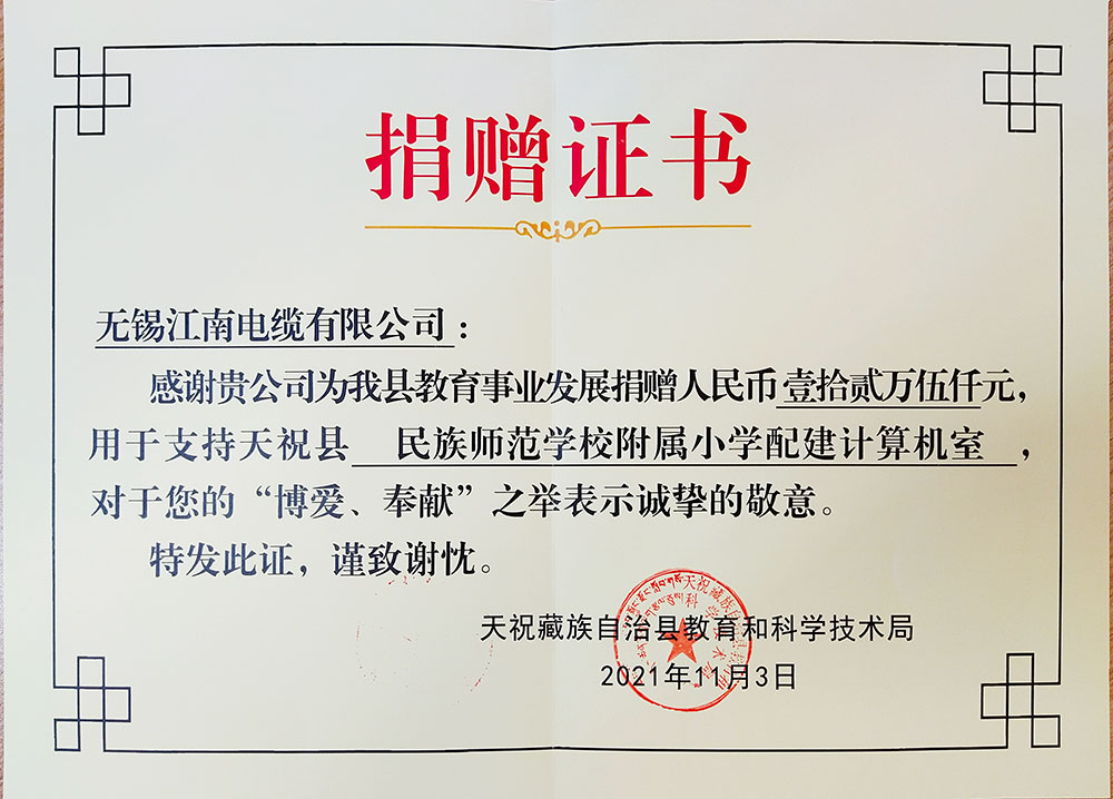 向宜兴市慈善会捐赠200万元——支持宜兴教育事业