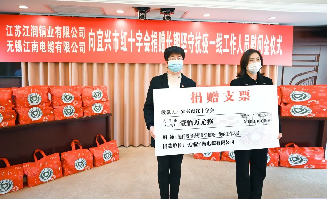 出资400万元设立“江南电缆(宜兴一中)(官林中学)奖教基金”,2022年,向宜兴市红十字会捐赠100万元慰问长期坚守抗疫一线工作人员、向宜兴市慈善会捐赠200万元用于支持宜兴市教育事业,同时公司成立江南“芯”动力党员志愿服务队,积极参与疫情防控等各项志愿服务工作,践行志愿服务,弘扬奉献精神。