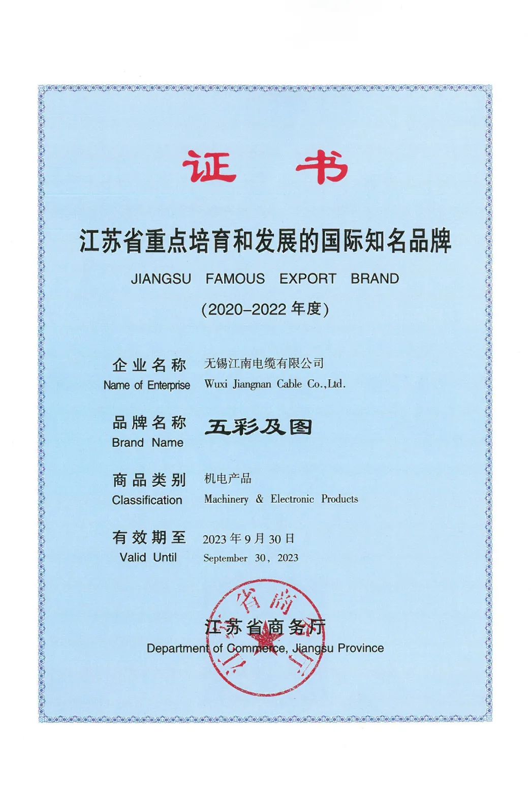 Brand is one of the important assets of anenterprise. Strengthening brand building and enhancing brand value are of greatsignificance to enhance the market competitiveness of enterprises. The 37 yeardevelopment of Jiangnan Cable has always take the concept of "excellentquality and win-win future", adhered to the value orientation of customerfirst, and closely focused on the values of "inclusiveness and focus,quality and integrity, pioneering and innovation, integration of intelligent manufacturing,and low-carbon ecology", committed to building the company into a domesticfirst-class and internationally renowned large enterprise group with innovativemanagement, advanced technology, and outstanding brand.