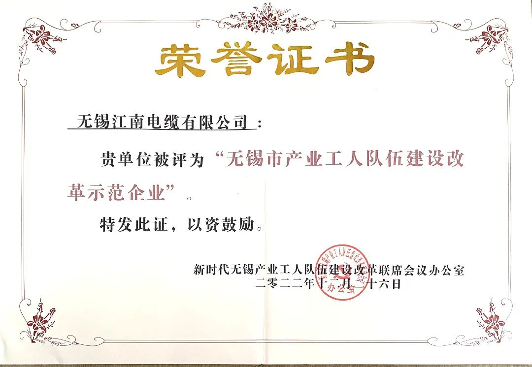 日前,无锡市产改办公布了首批“无锡市产业工人队伍建设改革示范企业”名单,江南电缆成为宜兴首家上榜企业!