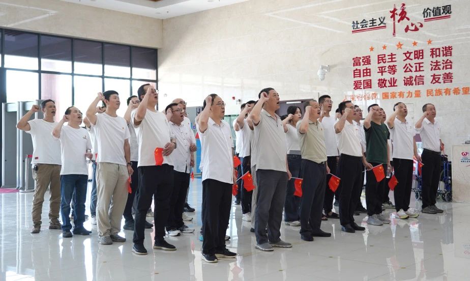 全体党员列队肃立,重温入党誓词,铿锵誓言在场馆间久久回荡。