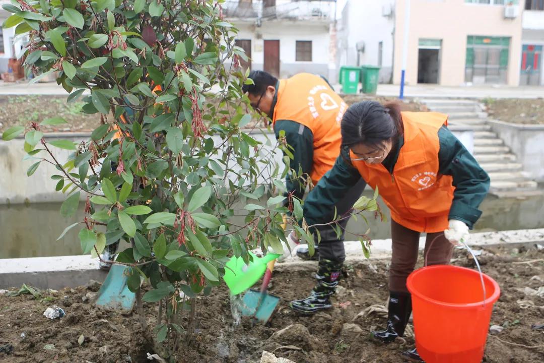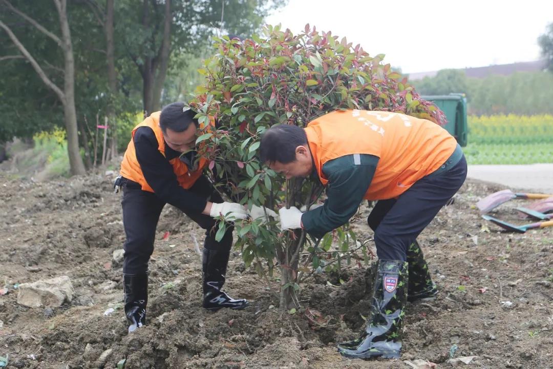 签约仪式后,大家来到中来村开展“坚持党建引领、助推植树添绿”为主题的植树活动。大家挥锄掘坑、培土浇水、互相配合……栽种下一棵棵树苗,现场呈现出一片热火朝天的景象。