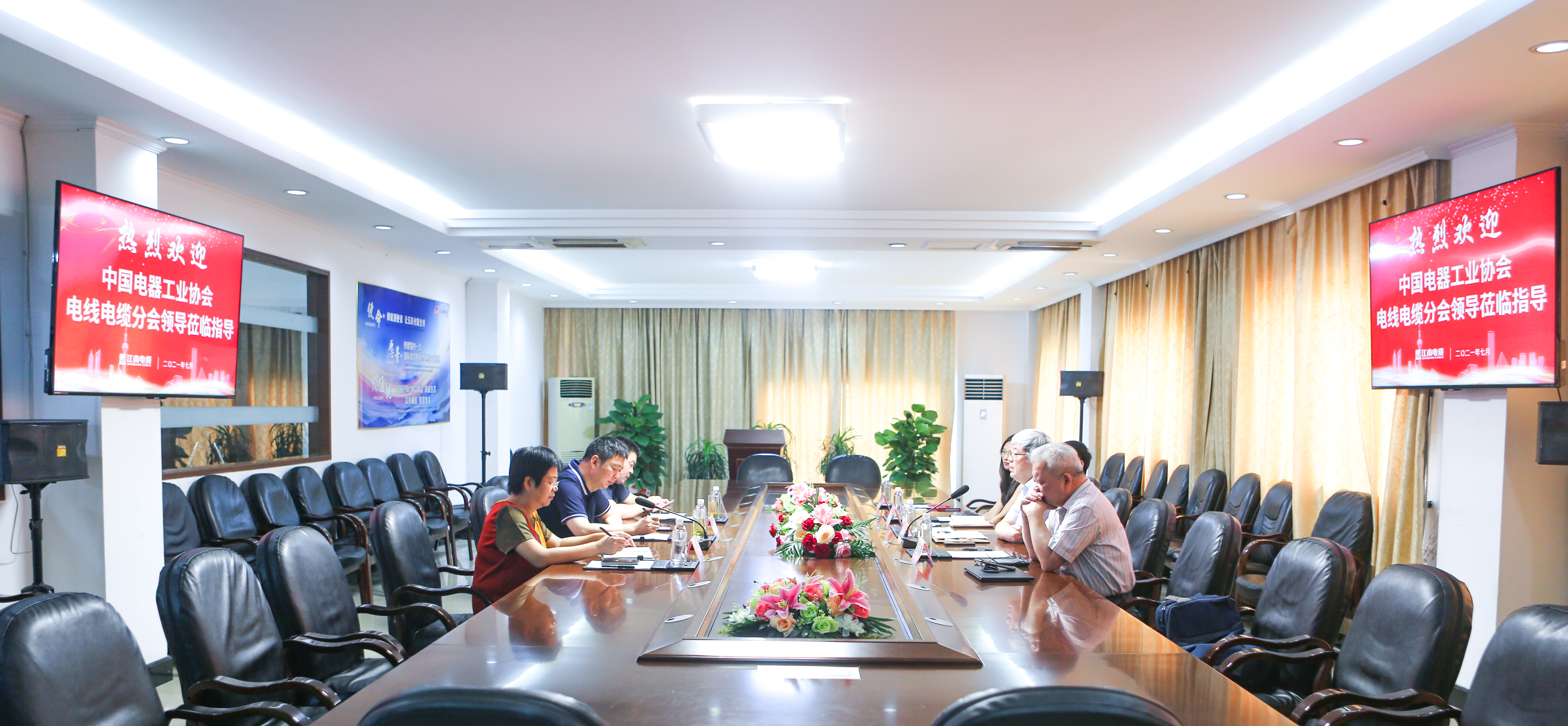 7月22日上午,中国电器工业协会副会长、电线电缆分会理事长、上海电缆研究所有限公司党委书记、执行董事周赤忠;中国电器工业协会电线电缆分会秘书长、上海电缆研究所有限公司副总经理高峰;中国电器工业协会电线电缆分会常务副秘书长吴士敏等领导一行来访江南电缆,公司董事局主席储辉、行政副总裁夏亚芳、总经理助理张传省等热情接待。双方就企业经营、行业发展、“十四五”规划等事宜展开了深入沟通与交流。