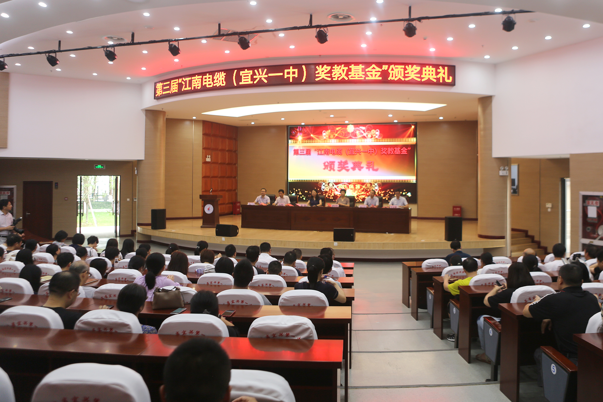8月28日,第三届“江南电缆(宜兴一中)奖教基金”颁奖典礼在宜兴一中举行。市一中校长周燕、副校长潘华君、蒋建军、王永辉、施卫群等校领导及全体教职工共同见证了这一荣耀时刻。江南电缆常务副总经理夏亚芳受邀担任颁奖嘉宾。