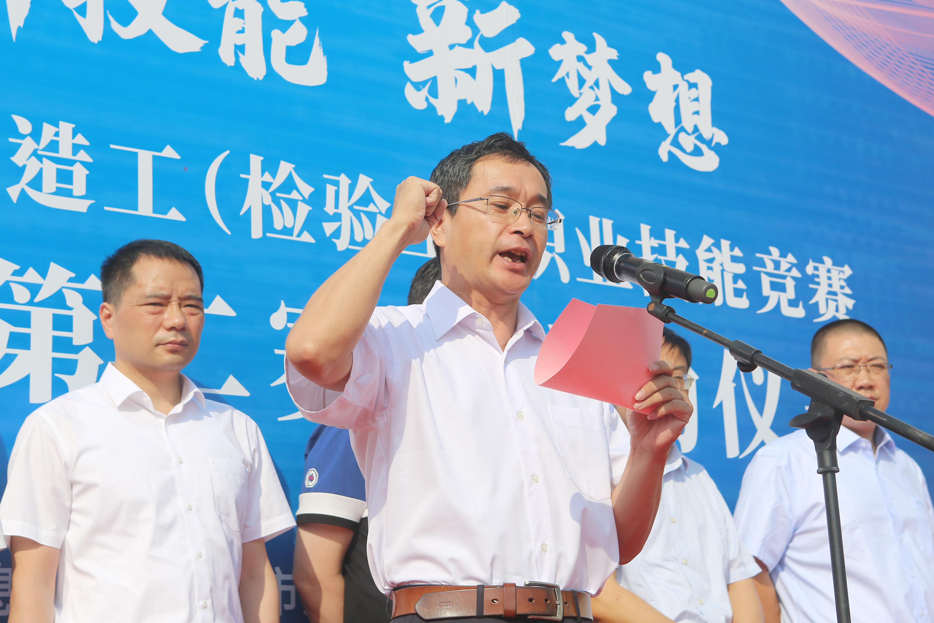 马壮代表全体裁判员宣誓:严格执行本次技能竞赛的竞赛规则和裁判方法,在裁判过程中坚持“公平、公正、公开"的原则,遵守竞赛纪律和各项保密规定,独立行使职业技能竞赛执裁权。