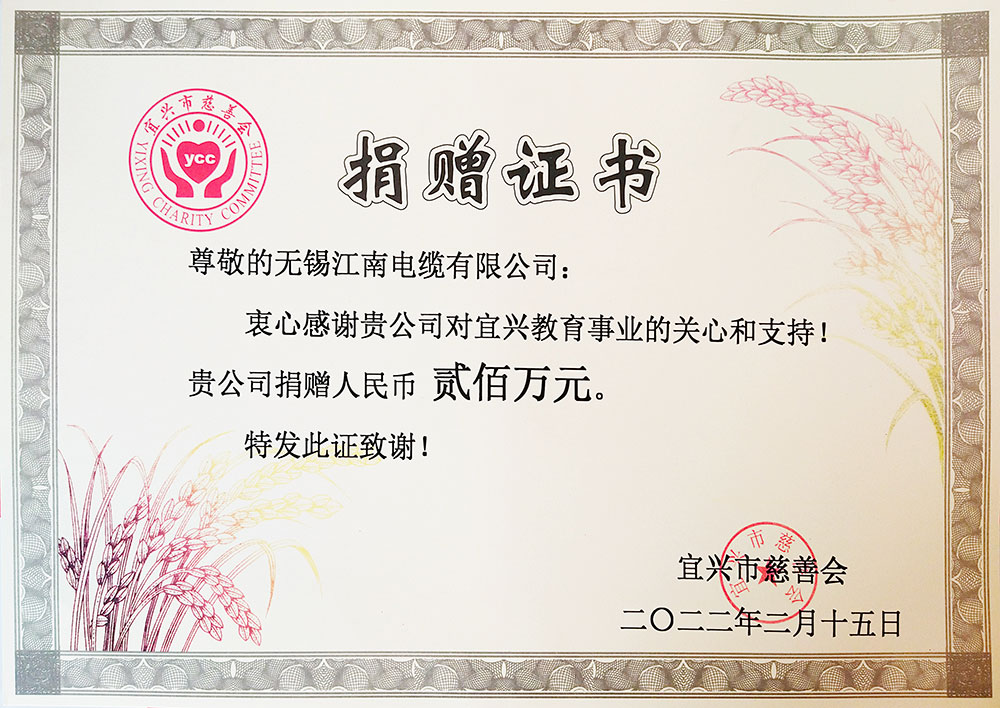 向宜兴市慈善会捐赠200万元——支持宜兴教育事业